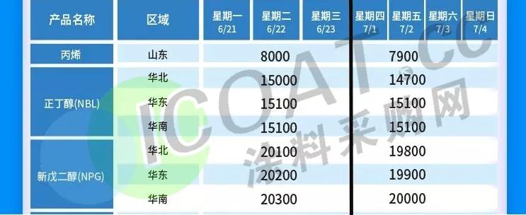 昨日(7月1日),萬華化學丙烯報價7900元/噸,較上周降價100元/噸;正丁醇華北區(qū)域報價14700元/噸,較上周下跌300元/噸;新戊二醇華北區(qū)域、華東區(qū)域、華南區(qū)域分別報價19800元/噸、19900元/噸、20000元/噸,報價較上周均下調(diào)300元/噸……價格“飄綠”無疑讓化工人看到了一絲希望,“化工巨頭”萬華化學領跌,是否可以一改上半年價格飆漲態(tài)勢,引領一波價格回調(diào)呢? (以上數(shù)據(jù)來源于萬華化學公眾號) 環(huán)氧樹脂下跌4000元/噸,較高點…