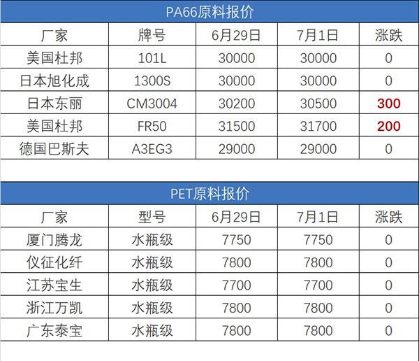 PA66 ? 市場(chǎng)交投氣氛一直無法提振,重心價(jià)格仍有下滑,廠家和貿(mào)易商出貨受阻,下游買氣平平,成交不大,剛需靈活采購,華南地區(qū)旭化成1300S報(bào)36000元/噸,神馬EPR27報(bào)25000元/噸。(未含稅)