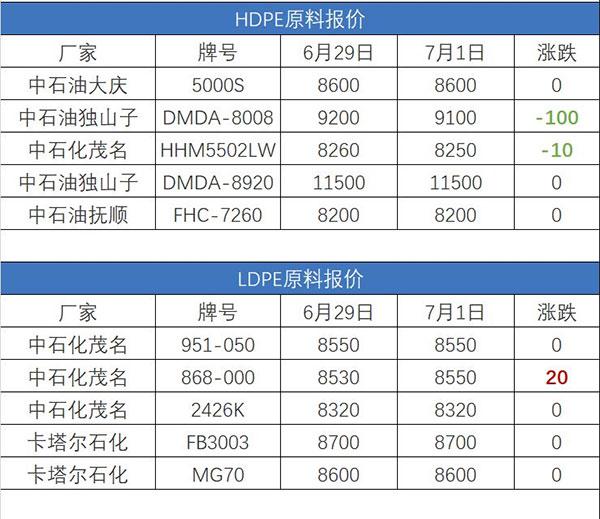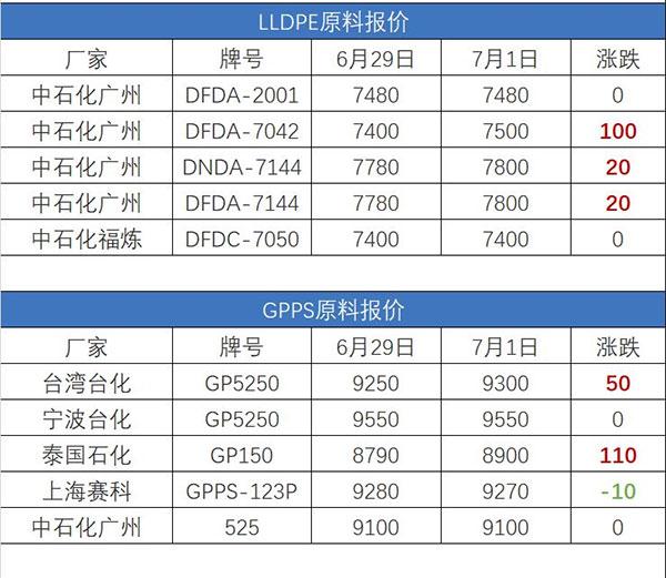 PE ? 期貨震蕩下行,挫傷市場(chǎng)氣氛,再加上月底出貨緩慢讓利稀少,下游采購也是剛需為主。但7月農(nóng)膜、包裝、中空行業(yè)開工率小幅提升,采購量有望提升,會(huì)對(duì)行情有一定的支持, LLDPE主流價(jià)格在7700-8050元/噸。(未含稅)